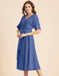 Features: V-Neck, Short Sleeve, Fabric Belt At Waist, Wrap Look, Midi Length, Solid Colors.