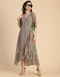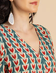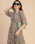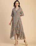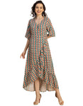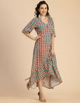 V Neck Printed Rayon quarter sleeve Wrap Dress