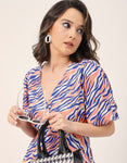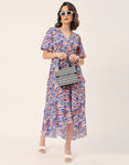 V Neck Wrap Printed Georgette Short Sleeve Dress