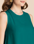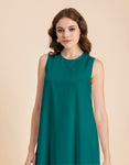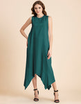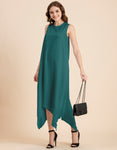 Contemporary Asymmetric Round Neck Solid Rayon Dress