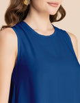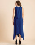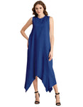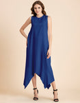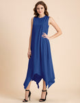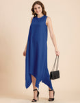 Contemporary Asymmetric Round Neck Solid Rayon Dress