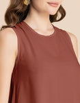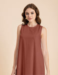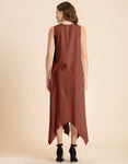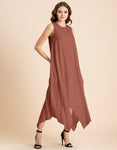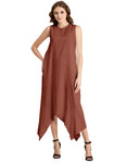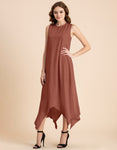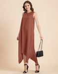 Contemporary Asymmetric Round Neck Solid Rayon Dress