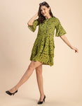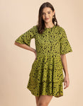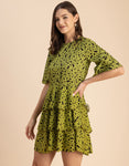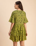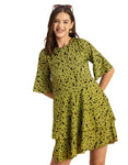 Features: Round Neck, 3/4Th Ruffle Layers, Drop Waist Style, Midi Length, Lightweight And Polka Dots Print Pattern