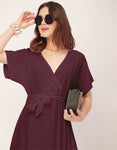 Solid Rayon Short Sleeve Fit & Flare Dress