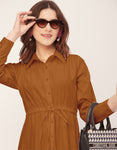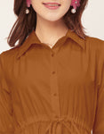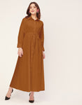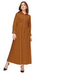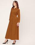 Classic Solid Cotton Long Sleeve A-Line Dress