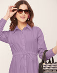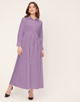 Classic Solid Cotton Long Sleeve A-Line Dress