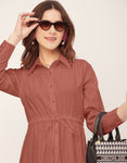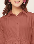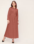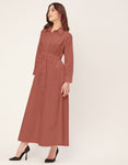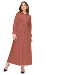Classic Solid Cotton Long Sleeve A-Line Dress