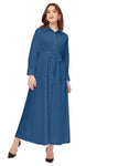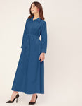 Classic Solid Cotton Long Sleeve A-Line Dress