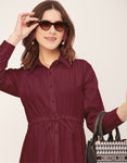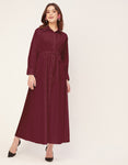 Classic Solid Cotton Long Sleeve A-Line Dress