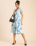 Short Sleeve V Neck A-Line Printed Dress