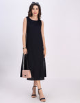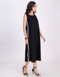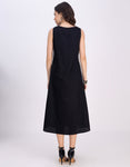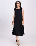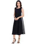 Moomaya Women's Printed Sleeveless A-Line Maxi Dress With Lace