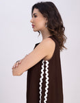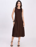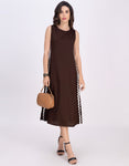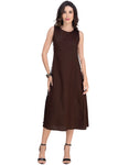 Moomaya Women's Printed Sleeveless A-Line Maxi Dress With Lace