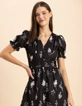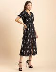Printed Front Slit Midi Dress