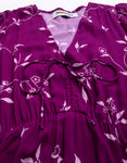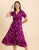 Features: Puffed Sleeves, Ruffled Hem, V Neck With Drawstrings, Calf Length, Conceal Zipper, Lightweight And All Over Printed Pattern