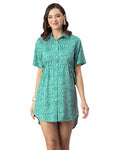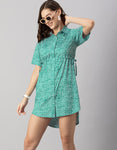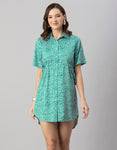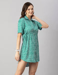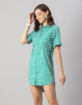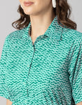 Printed Elbow Sleeves Collared Dress