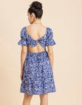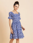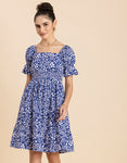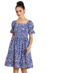 Features: Square Neck, Short Puffed Sleeves, Tiered Hem, Knee Length, Lightweight And All Over Printed Pattern