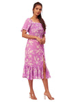 Features: Short Sleeve, Ruffle Style, Square Neck, Knee Length, Side Slit, Lightweight, Flared Ruffle Hem, All Over Prints.