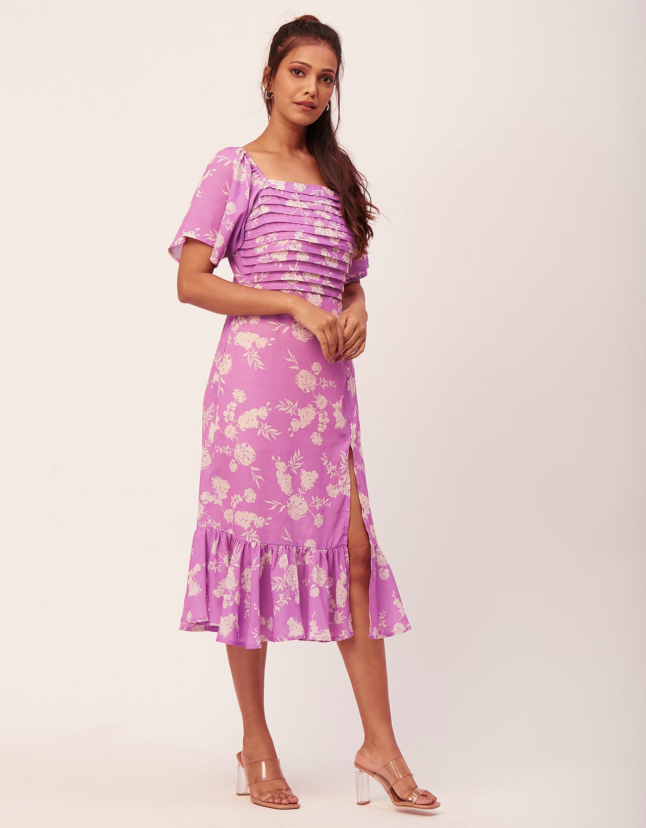 Tags: Printed Dress For Women, Side Slit Dresses For Women, Ruffle Dress, Square Neck Casual Dress, Resort Wear For Women, Dresses For Women 2023 Casual, Partywear Dress