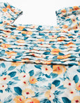 Features: Short Sleeve, Ruffle Style, Square Neck, Knee Length, Side Slit, Lightweight, Flared Ruffle Hem, All Over Prints.