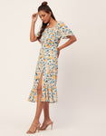 Tags: Printed Dress For Women, Side Slit Dresses For Women, Ruffle Dress, Square Neck Casual Dress, Resort Wear For Women, Dresses For Women 2023 Casual, Partywear Dress