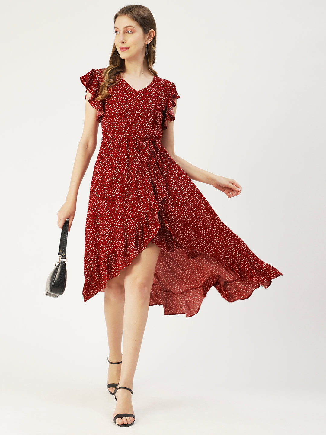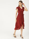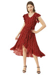 Tags: printed ruffle dress, short sleeve dress, front slit dress for women, summer dress for women, dresses for girls, stylish dresses for women, holiday clothing, long wrap style dress, casual dress for women, beach dress