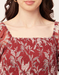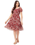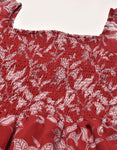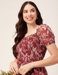 Features: Smocked Puffed Sleeves Square Neck Tiered Hem Knee Length Lightweight And All Over Printed Pattern