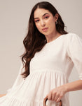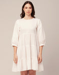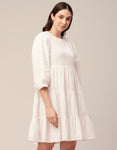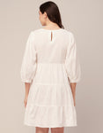Features: Side Zipper Round Neck Tiered Hem Back Button Closure Quarter Sleeves Knee Length Lightweight And Solid Colors.