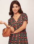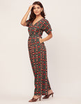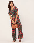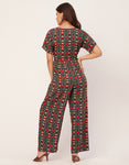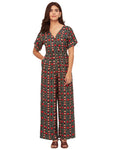 Short Sleeve Full Leg Printed Rayon Jumpsuit