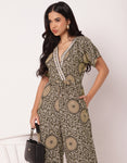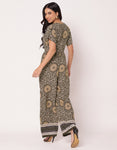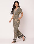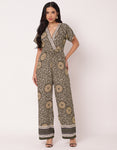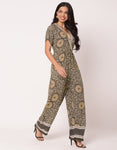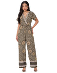 Short Sleeve Full Leg Printed Rayon Jumpsuit