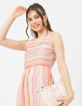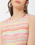 Features: Sleeveless, Round Neck, Loose Fit, Stripe Pattern, Casual Style, All Over Printed Pattern.