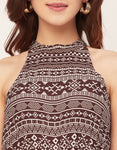Halter Neck Full Leg Printed Rayon Jumpsuit