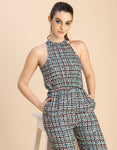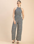 Halter Neck Full Leg Printed Rayon Jumpsuit