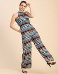 Halter Neck Full Leg Printed Rayon Jumpsuit