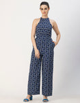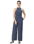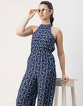 Halter Neck Full Leg Printed Rayon Jumpsuit
