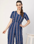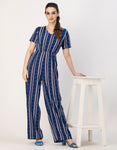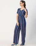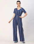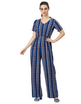 Short Sleeve Full Leg Printed Rayon Jumpsuit