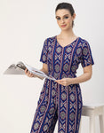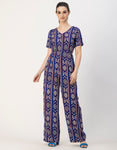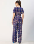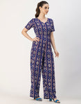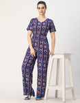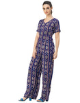 Short Sleeve Full Leg Printed Rayon Jumpsuit