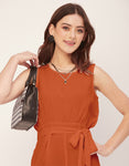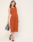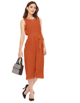 Elegant Solid Georgette Sleeveless quarter sleeve Jumpsuit