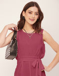 Elegant Solid Georgette Sleeveless quarter sleeve Jumpsuit
