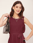 Elegant Solid Georgette Sleeveless quarter sleeve Jumpsuit