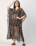 Kimono Sleeves V Neck Kaftan Printed Rayon