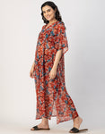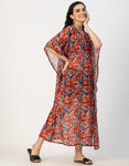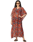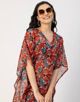 Kimono Sleeves V Neck Kaftan Printed Rayon