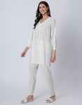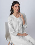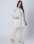 Elegant 2-Pc V-Neck Coord Set, Inverted Pleat Kurta