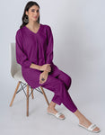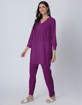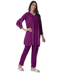 Elegant 2-Pc V-Neck Coord Set, Inverted Pleat Kurta
