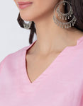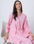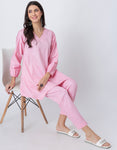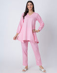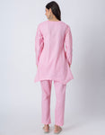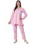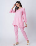 Women Co-ord Set, Long Sleeve Kurta With High-Low Hem