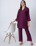 Women's Kurta and Pant Set Lace Detail Designer Co-ord Set