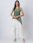 Asymmetric Indo-Western Coord Set, Color-Block Kurta with Pants