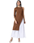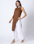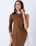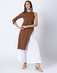 Features: Embrace a stylish blend of tradition and modernity with our Moomaya Solid One Shoulder Kurta, featuring a chic side slit for added flair. Paired with wide elastic waist palazzo pants, this ensemble offers comfort and elegance for any occasion. Ideal for festive gatherings or casual outings