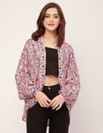 Long Sleeves V Neck Boxy Printed Shrug