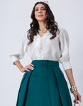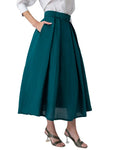 Exclusive Victorian Elegance Midi Box Pleat Skirt with Side Pocket