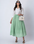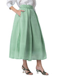 Exclusive Victorian Elegance Midi Box Pleat Skirt with Side Pocket